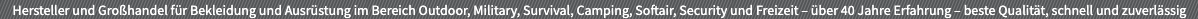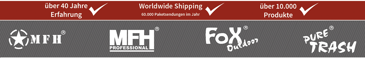 Herzlich Willkommen im Max Fuchs Online Shop für Outdoor, Military, Surplus, Armeebekleidung, Armeeausrüstung, Abenteuer und Adventure Bekleidung und Ausrüstung. Das Unternehmen ist seit der Gründung im Jahre 1981 ein Synonym für hochwertige und qualitative Produkte im Outdoor und Military Bereich. Das Sortiment umfasst Ausrüstung und Bekleidung für alle Tätigkeiten und Hobbies im Outdoor-Bereich. Ob Wanderer, Jäger, Angler, Schneeschuhwanderer, Camper, für Paintball, Softair oder auch für Personen die berufsmässig viel draussen sind, bietet die Max Fuchs AG alles was hierzu nötig ist. Mit über 40 Jahren Erfahrung gehört das Unternehmen mittlerweile zu den grössten Grosshändlern in Europa für Outdoor und Military Bekleidung und Ausrüstung.